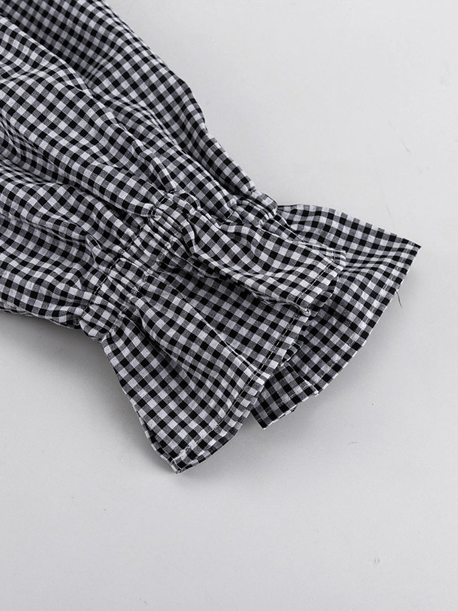 | Feature | Buttoned , Contrast Color , Plaid , Ruffled , Split-joint |
