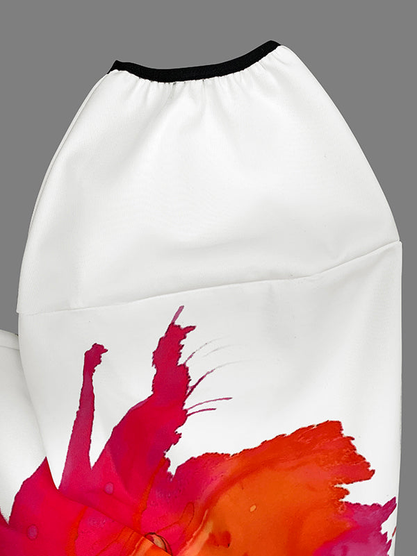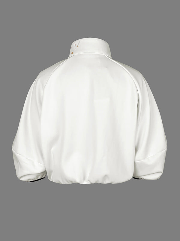Loose Puff Sleeves Asymmetric Floral Printed Split-Joint High Neck Outerwear