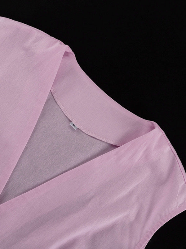 Loose Split-Joint Sleeveless Pleated V-Neck Vest + Pants Trousers Two Pieces Set