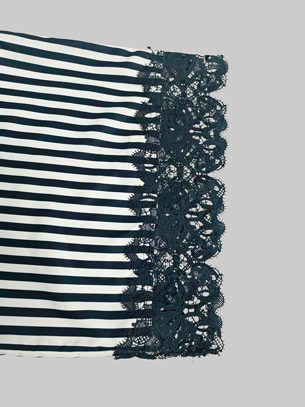 Loose Wide Leg Contrast Color Pockets Split-Joint Striped Pants Trousers