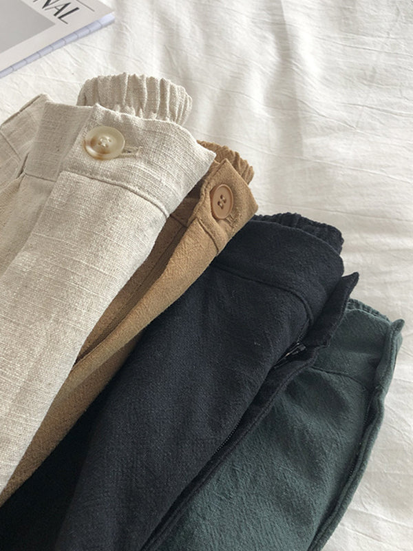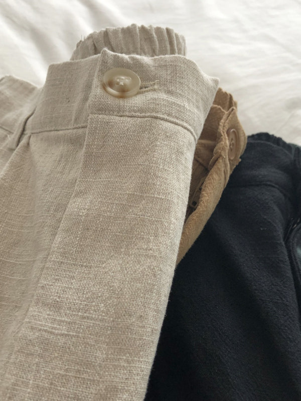 Loose Wide Leg Elasticity Pleated Solid Color Shorts