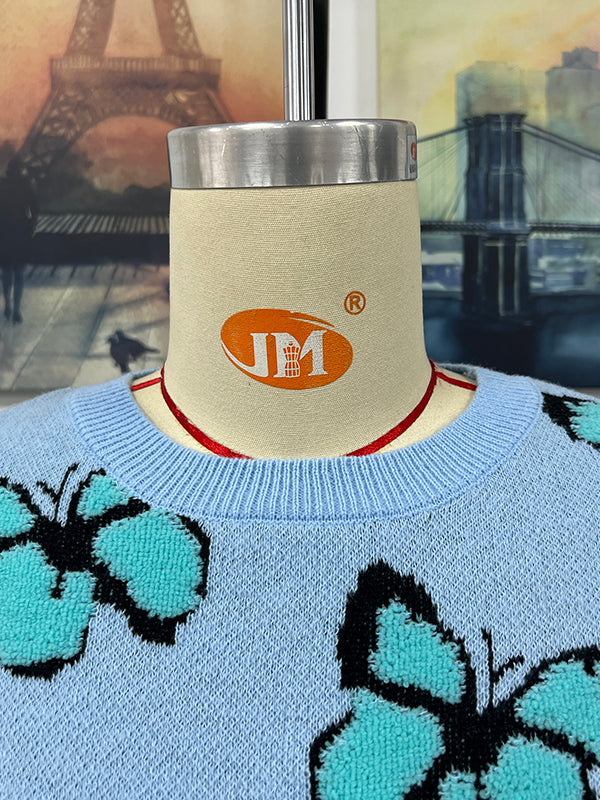 Original Long Sleeves Loose Butterfly Print Contrast Color Round-Neck Sweater Tops