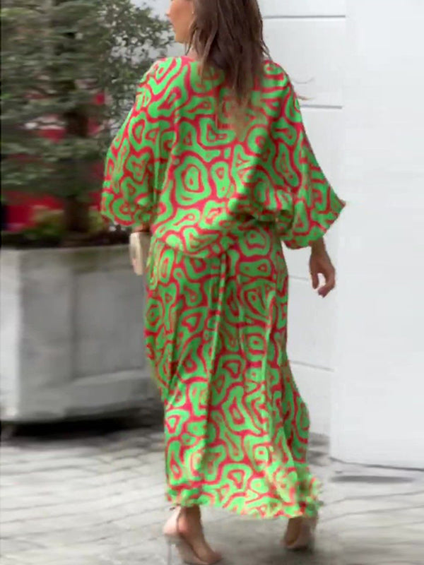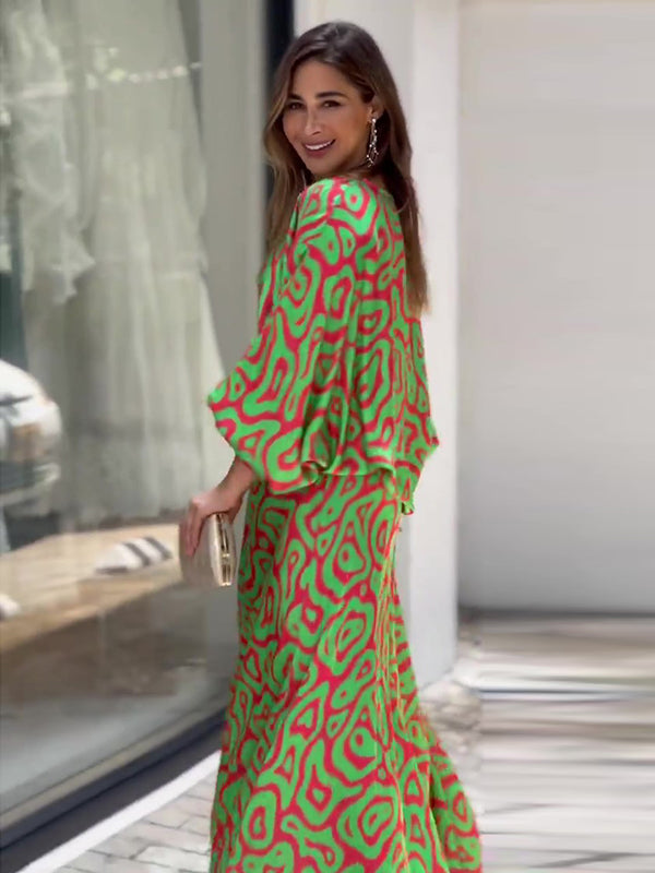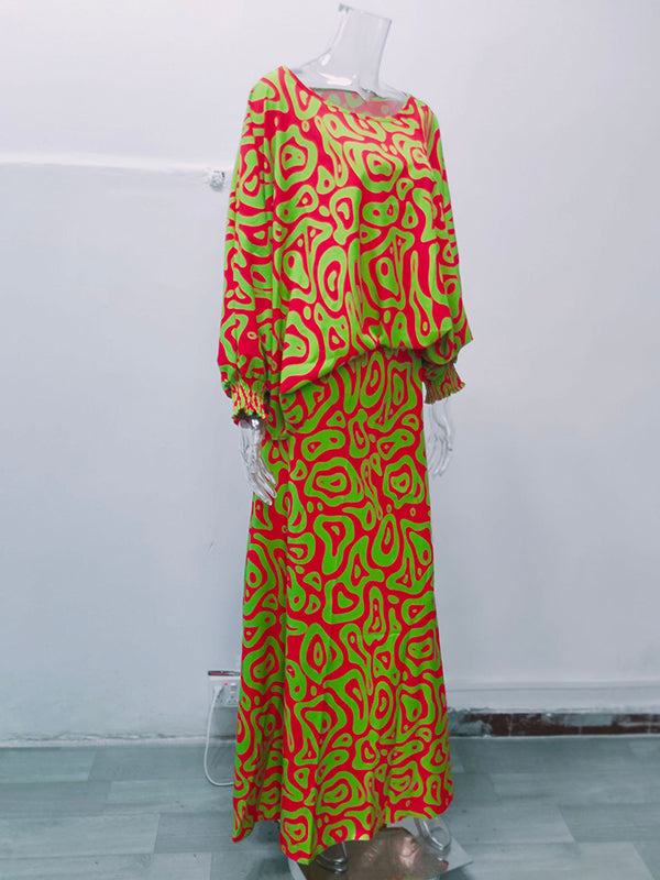 Original Loose Contrast Color T-Shirt Top&Skirt 2 Pieces Set