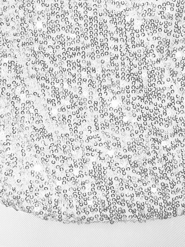 Skinny Sleeveless High-Waisted See-Through Sequined Split-Joint V-Neck Bodysuits