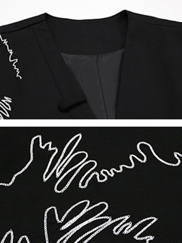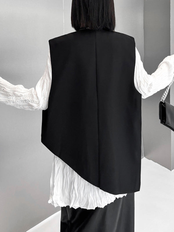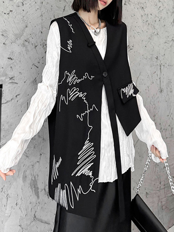 Sleeveless Asymmetric Buttoned Embroidered V-Neck Vest Top