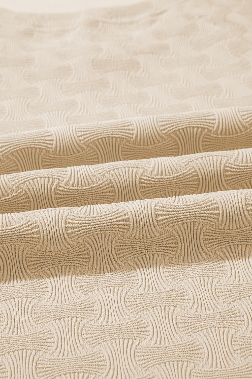 Textured Crew Neck Cap Sleeve Slim T Shirt features interesting fabric texture with classic crew neckline and short cap sleeves in a flattering slim-fit silhouette. The textured material creates visual interest while the cap sleeves provide modest coverage that highlights your shoulders beautifully. Perfect for layering, casual outings, or when you want a basic tee that feels anything but ordinary with sophisticated texture and tailored fit.