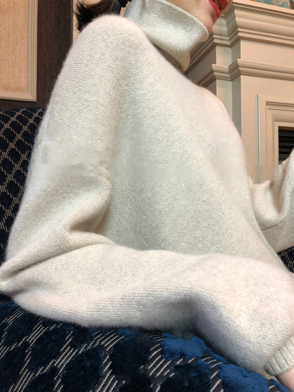 Urban Loose Solid Color High-Neck Sweater Tops & Skirts Bottoms Suits