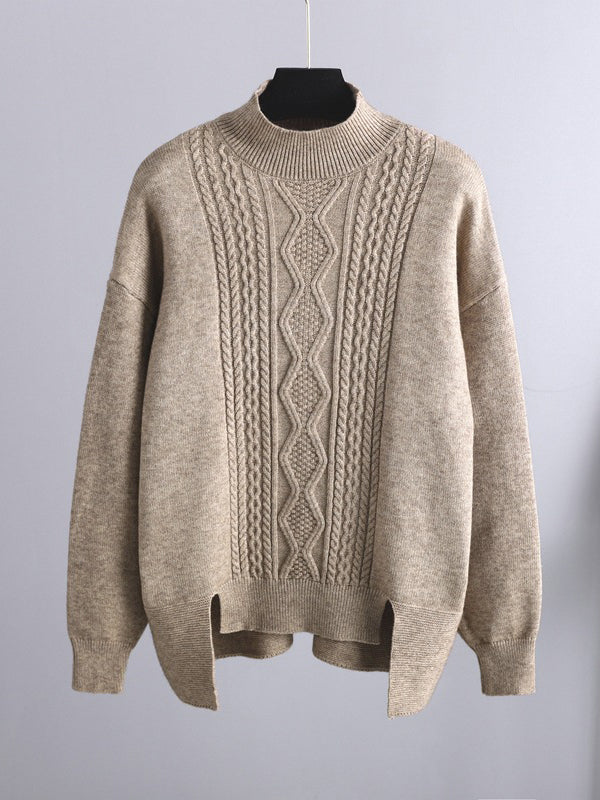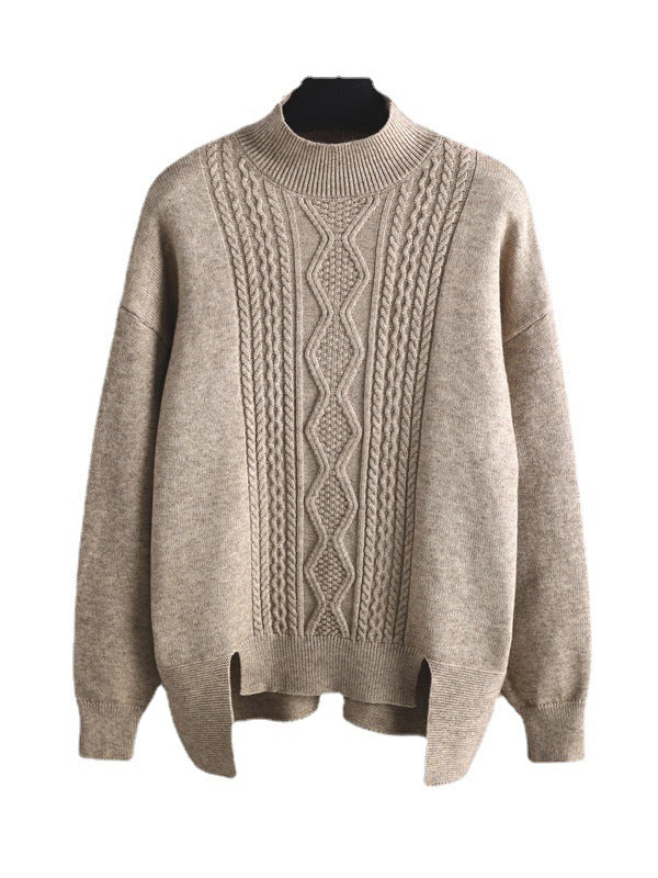 Urban Loose Split-Side Half Turtleneck Sweater Tops& Wide Leg Pants Two Pieces Set