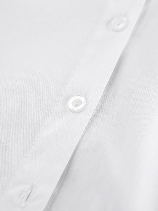 Long Sleeves Loose Pleated Solid Color Split-Joint Tied Waist V-Neck Mini Dresses Shirt Dress