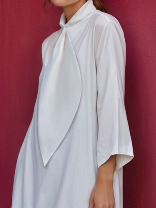 Long Sleeves Loose Pleated Solid Color Tied Mock Neck Mini Dresses