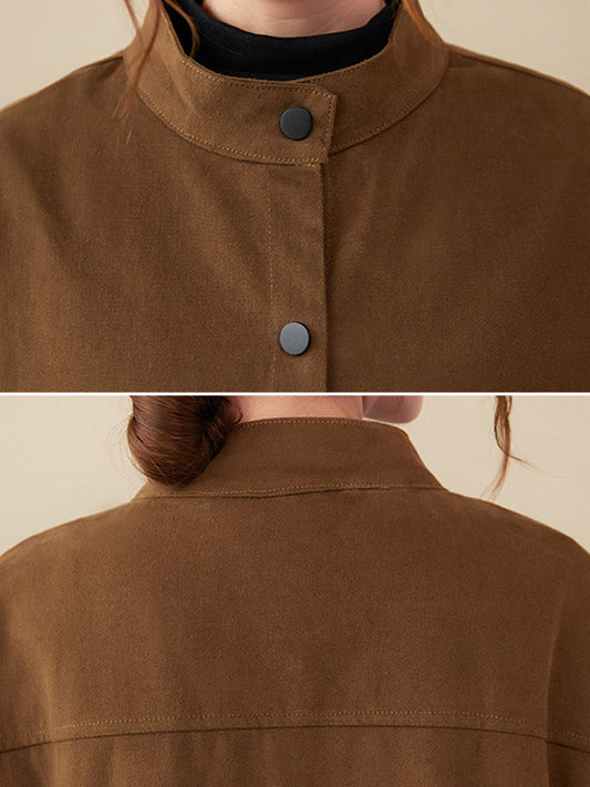 Long Sleeves Loose Buttoned Split-Joint Stand Collar Jackets Outerwear