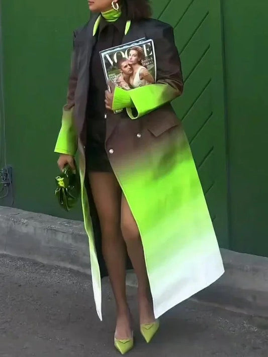 Long Sleeves Loose Buttoned Gradient Pockets Split-Joint Notched Collar Outerwear