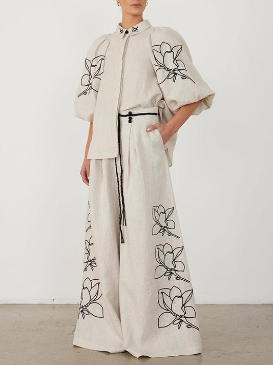 Urban Wide Leg Loose Printed Off-The-Shoulder Blouses &Casual Pants Two Pieces Set