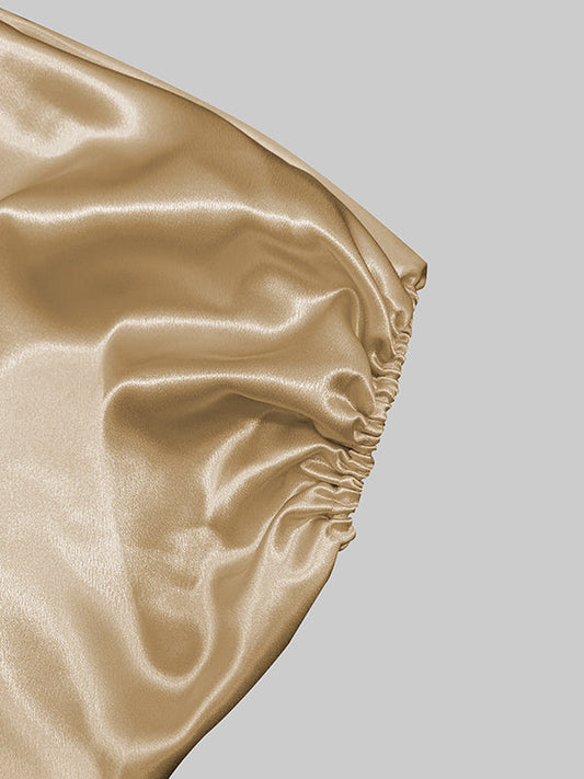 Long Sleeves Puff Sleeves Beaded Mesh Pleated Deep V-Neck Blouses&Shirts Tops