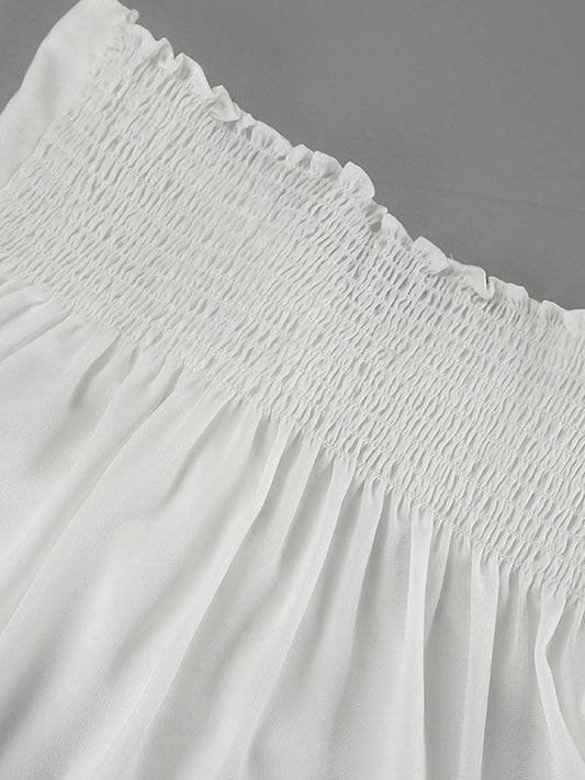 Loose Puff Sleeves Ruffled Solid Color Off-The-Shoulder Blouses&Shirts Tops