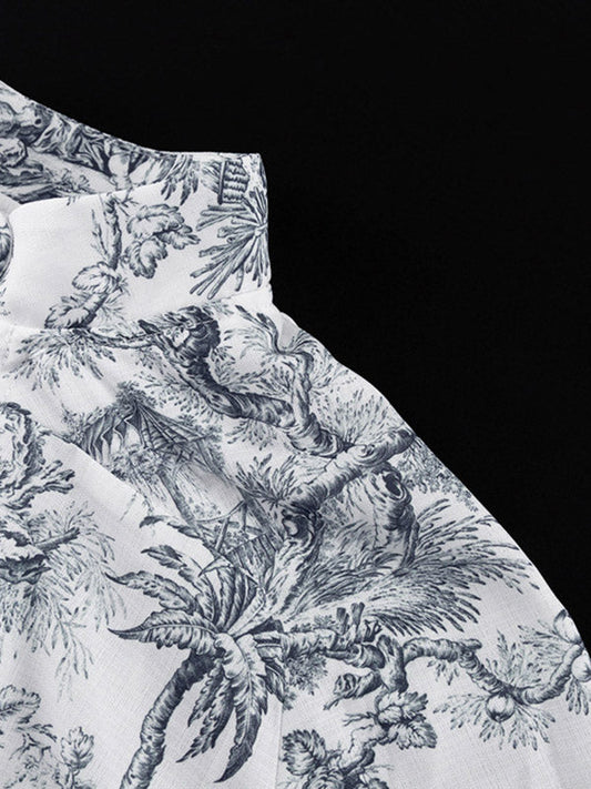Loose Puff Sleeves Buttoned Flower Print Stand Collar Blouses&Shirts Tops