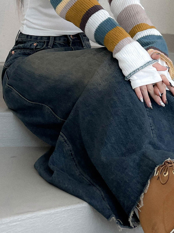 A-Line High Waisted Fringed Gradient Split-Joint Skirts