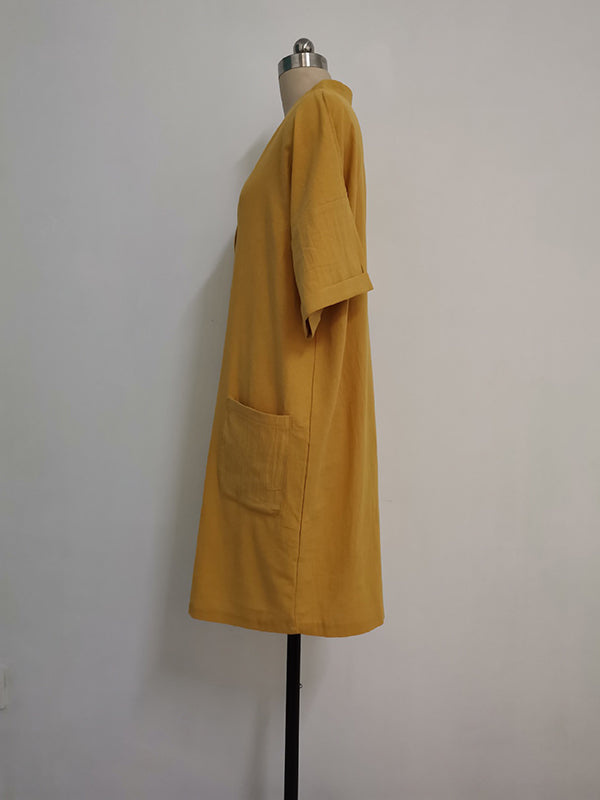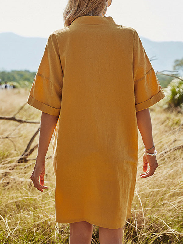 A-Line High Waisted Pockets Solid Color Split-Joint V-Neck Mini Dresses