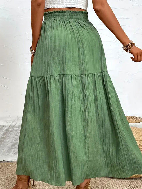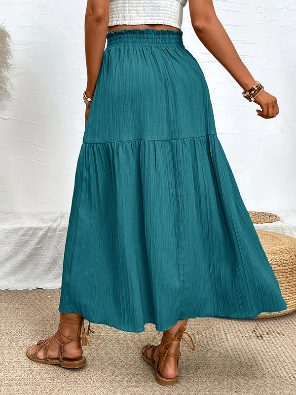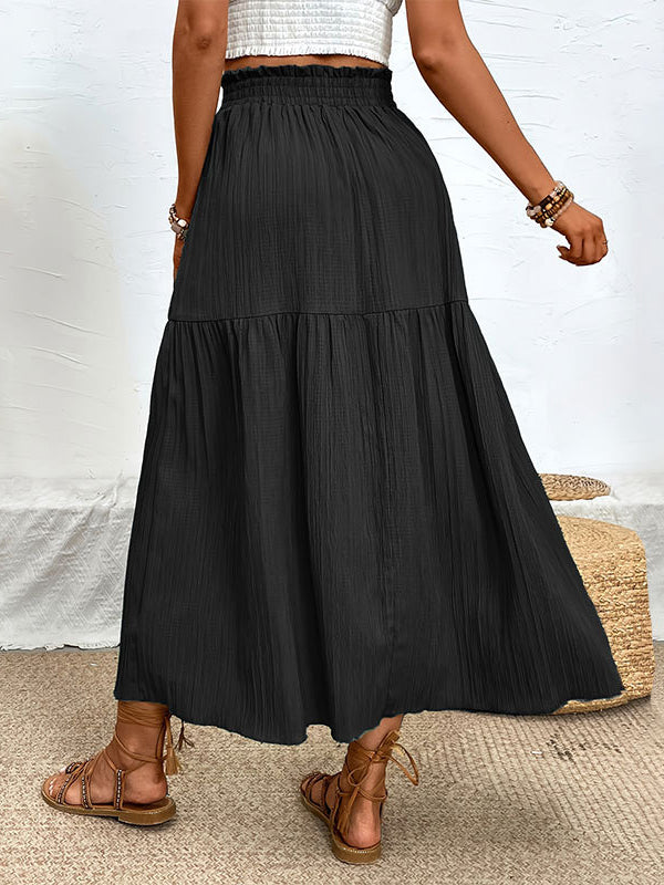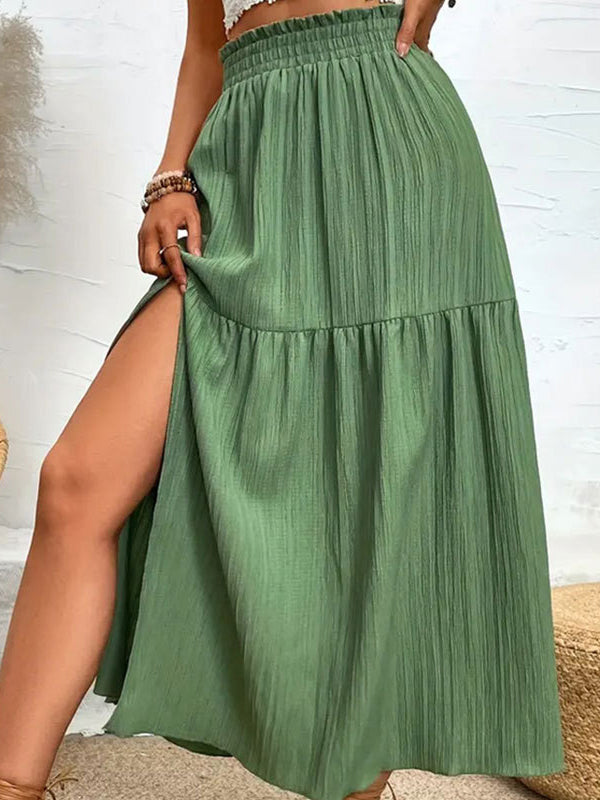 A-Line Loose Elasticity Solid Color Split-Joint Split-Side Skirts Bottoms