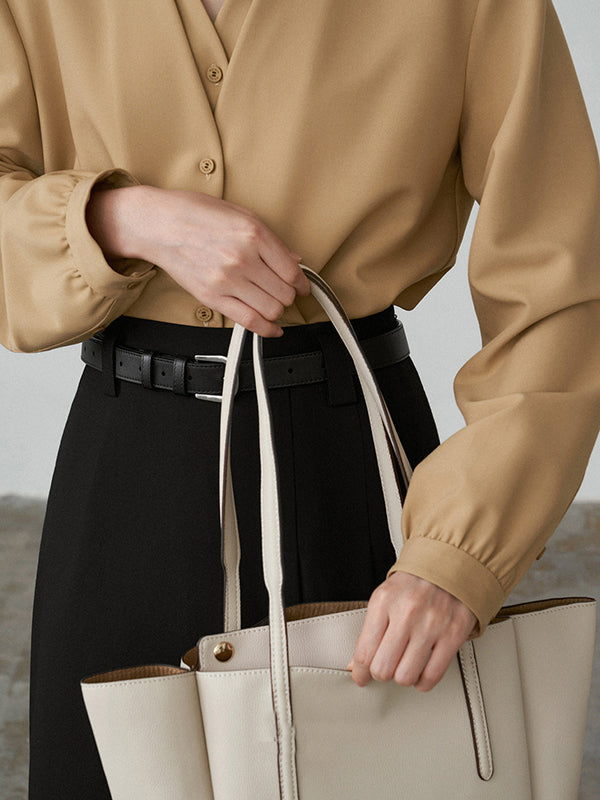 False Two Long Sleeves Buttoned Solid Color V-Neck Blouses&Shirts Tops