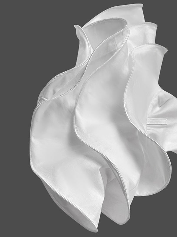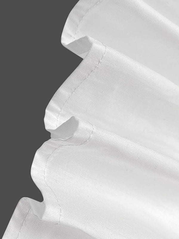Flared Sleeves Long Sleeves Buttoned Falbala Solid Color Stand Collar Blouses&Shirts Tops