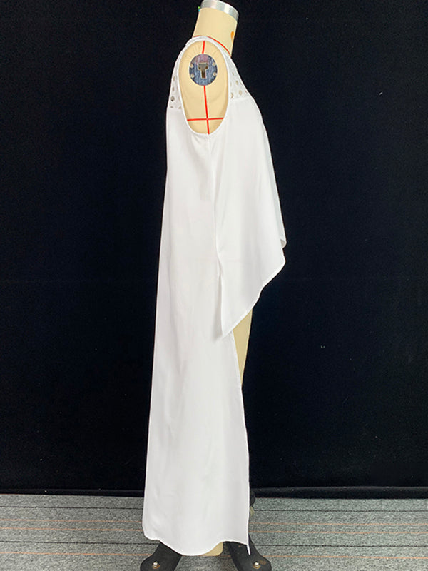 High-Low Loose Embroidered Solid Color Round-Neck Vest Top