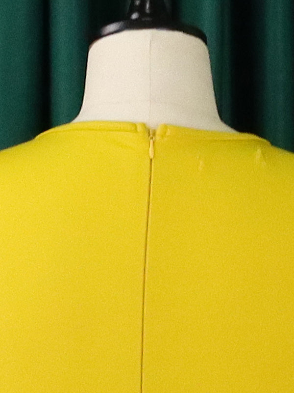 Irregular Clipping Plus Size Belted Solid Color Round-Neck Midi Dresses