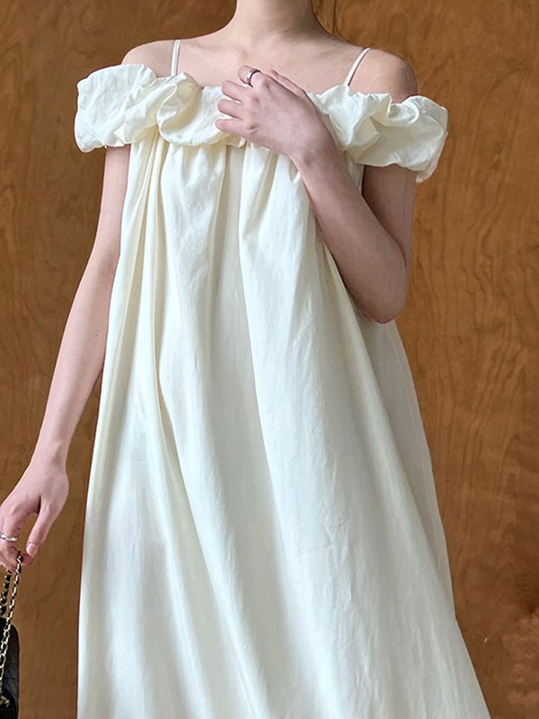 Loose Sleeveless Elasticity Pleated Solid Color Split-Joint Off-The-Shoulder Maxi Dresses