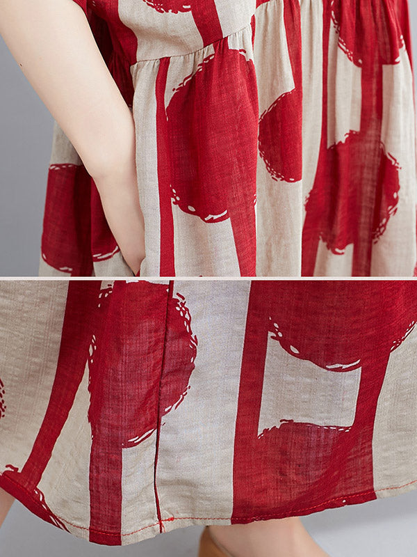 Original Polka-Dot Split-Joint Round-Neck Midi Dress