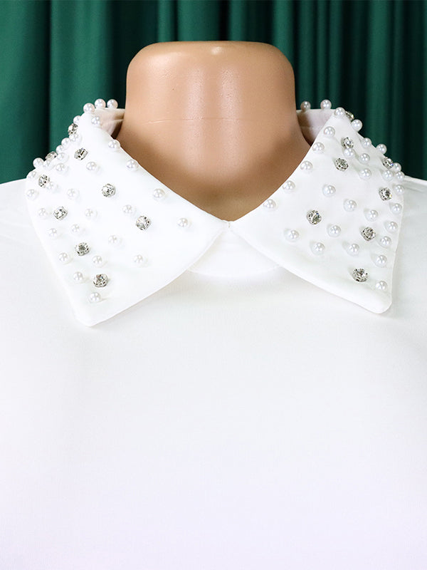 Puff Sleeves Beads Mesh Solid Color Split-Joint Round-neck Midi Dresses