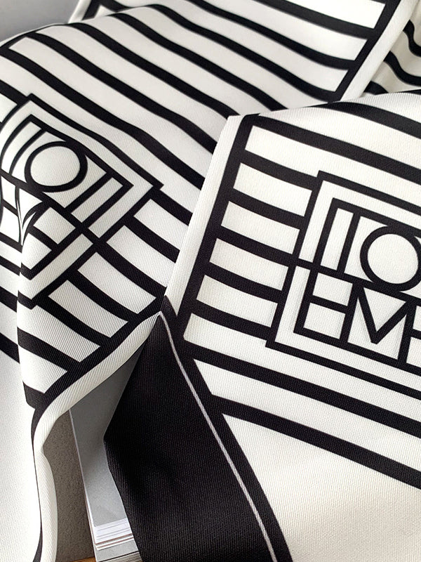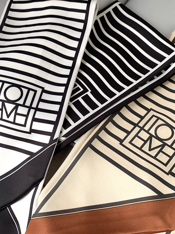 Urban Contrast Color Striped Printed Silk Imitation Scarf