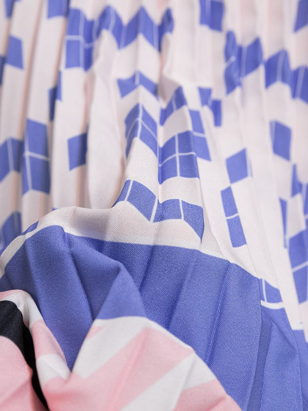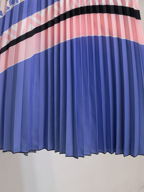 Urban Multi-Colored Printed High Waisted Pleated Skirt